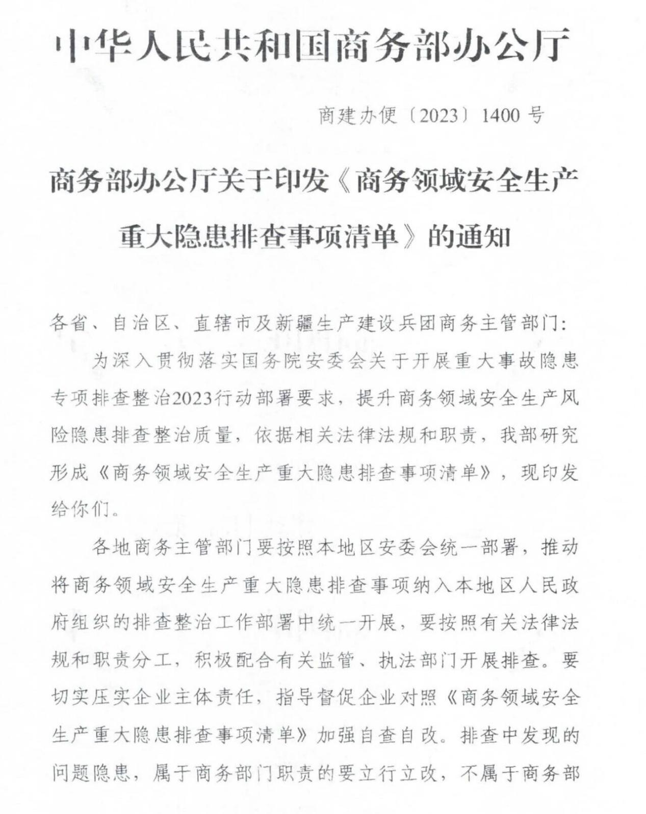 商務領(lǐng)域安全生產(chǎn)重大隱患排查事項清單