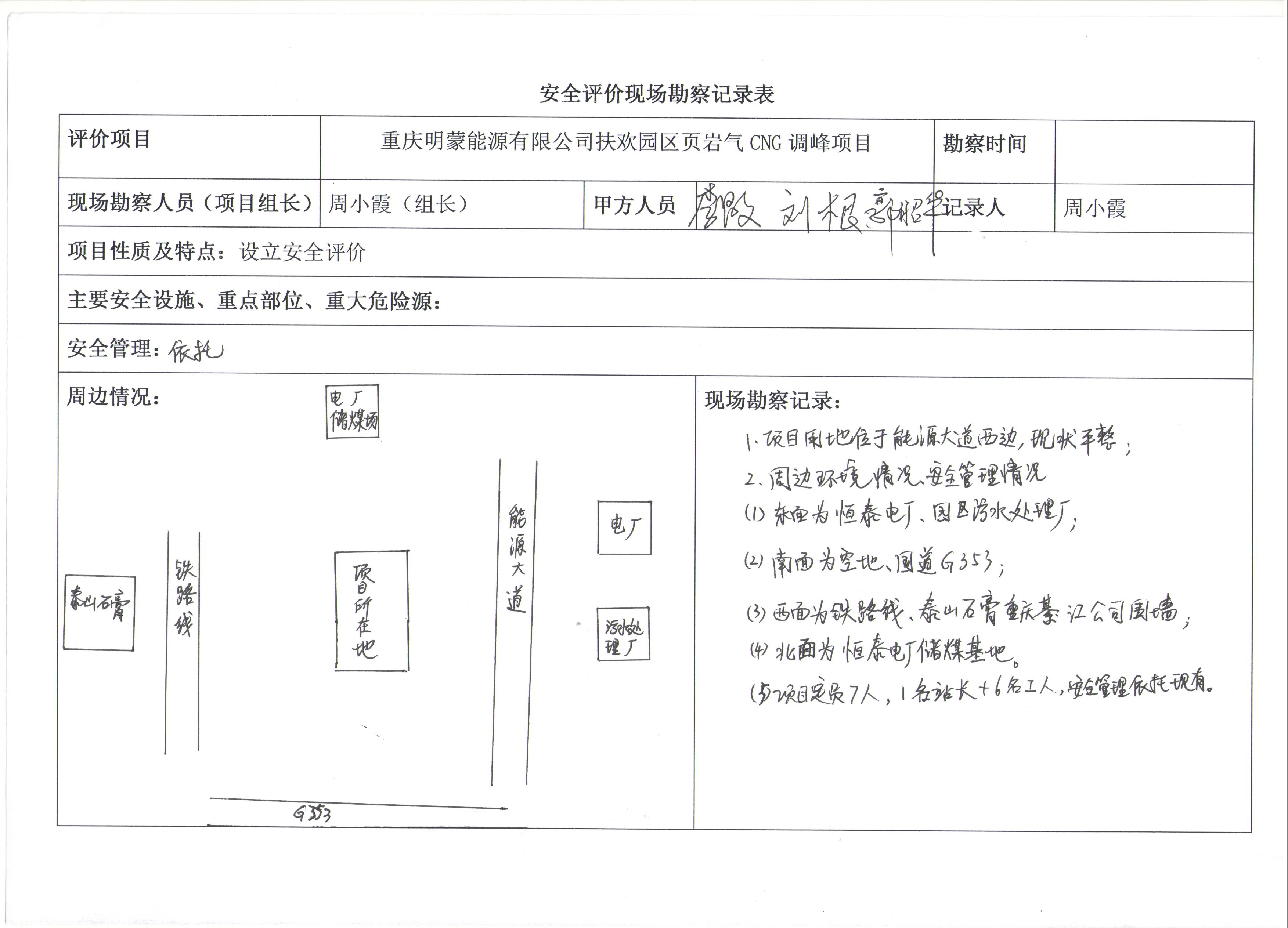 項目名稱 | 重慶明蒙能源有限公司扶歡園區(qū)頁巖氣CNG調(diào)峰項目設(shè)立安全評價 | 合同編號 | DA(渝)PJ-035 | |||||