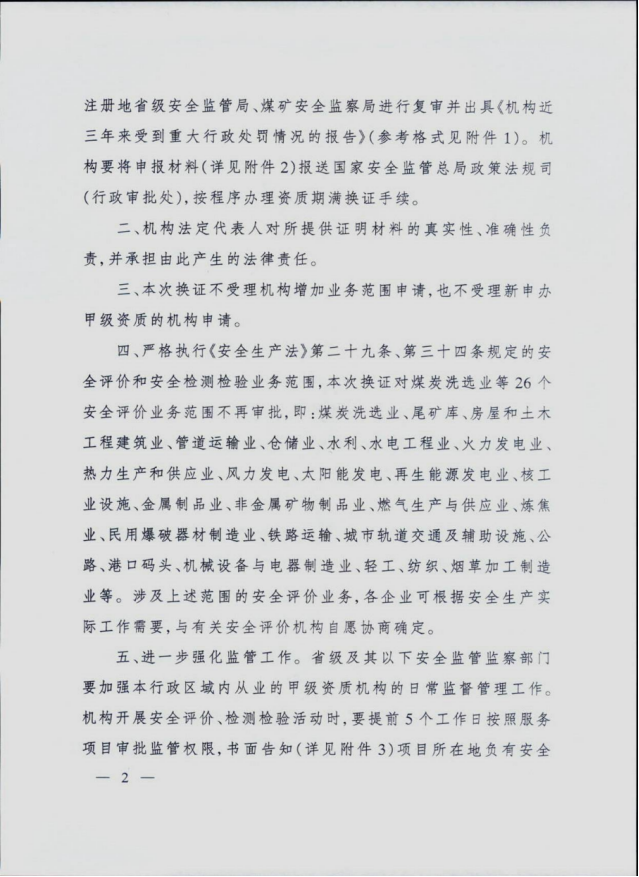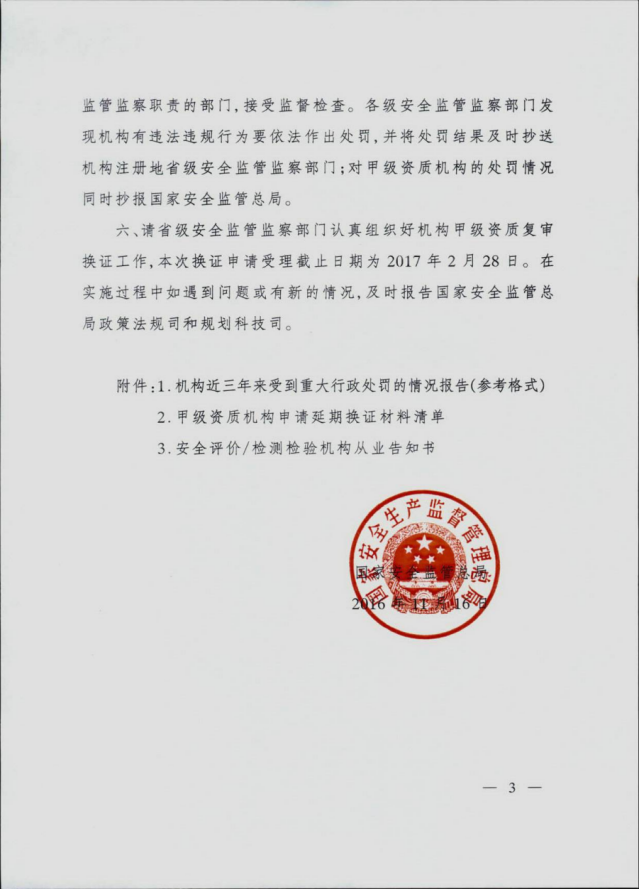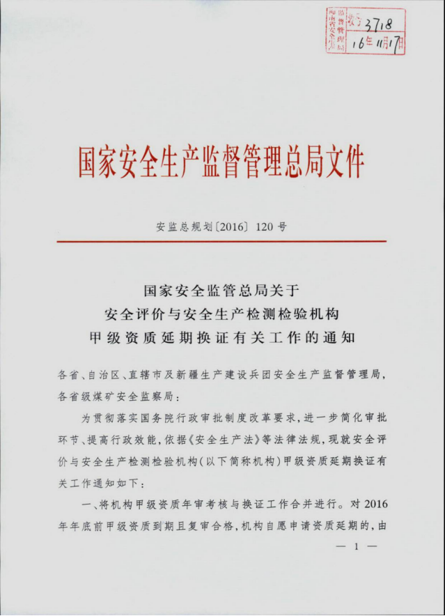 《國家安全監(jiān)管總局關(guān)于安全評(píng)價(jià)與安全生產(chǎn)檢測檢驗(yàn)機(jī)構(gòu)甲級(jí)資質(zhì)延期換證有關(guān)工作的通知》