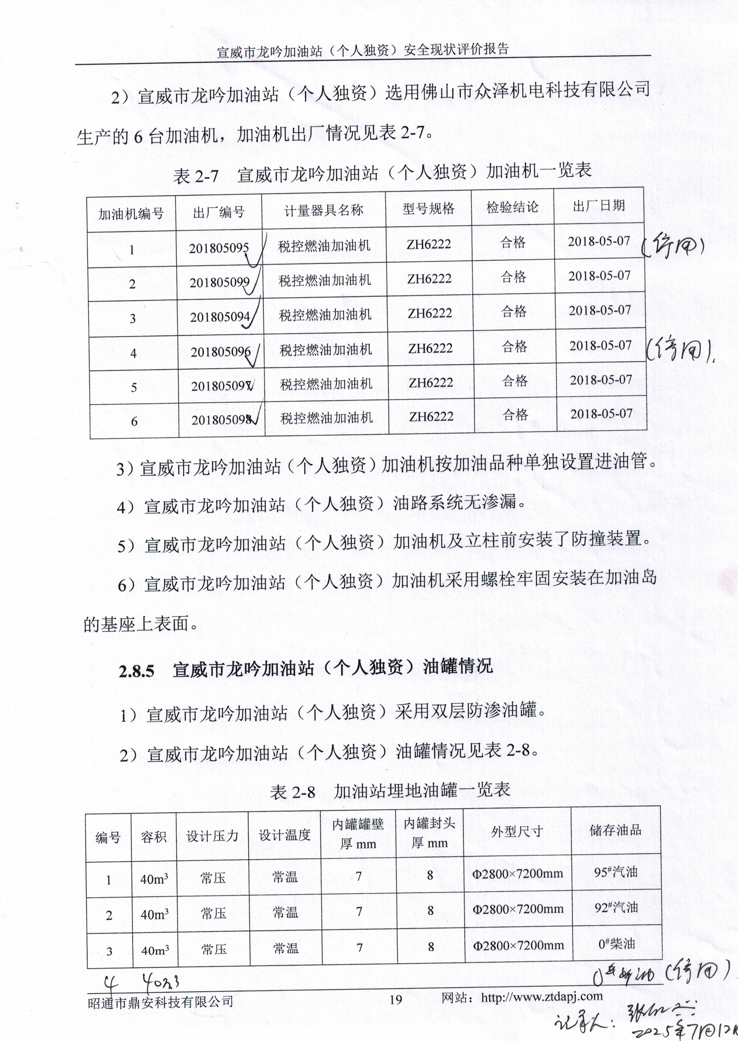 評價結(jié)論為:宣威市龍吟加油站(個人獨(dú)資)已完成本次評價發(fā)現(xiàn)的不符合項(xiàng)整改,站址選擇及平面布置、加油工藝及設(shè)施、消防設(shè)施、電氣及報警系統(tǒng)、建(構(gòu))筑物等方面符合《汽車加油加氣加氫站技術(shù)標(biāo)準(zhǔn)》(GB50156-2021)、《加油站作業(yè)安全規(guī)范》(AQ3010-2022)標(biāo)準(zhǔn)規(guī)定;經(jīng)營場所、危險化學(xué)品儲存設(shè)施、人員配置及培訓(xùn)考核、安全管理制度、安全操作規(guī)程、應(yīng)急預(yù)案、應(yīng)急物資滿足《危險化學(xué)品安全管理?xiàng)l例》(國務(wù)院令第591號,第645號修改)第三十四條、《危險化學(xué)品經(jīng)營許可證管理辦法》(原國家安監(jiān)總局令第55號公布,第79號修正)第六條要求,從安全的角度宣威市龍吟加油站(個人獨(dú)資)具備危險化學(xué)品經(jīng)營的安全條件。 | ||||||||