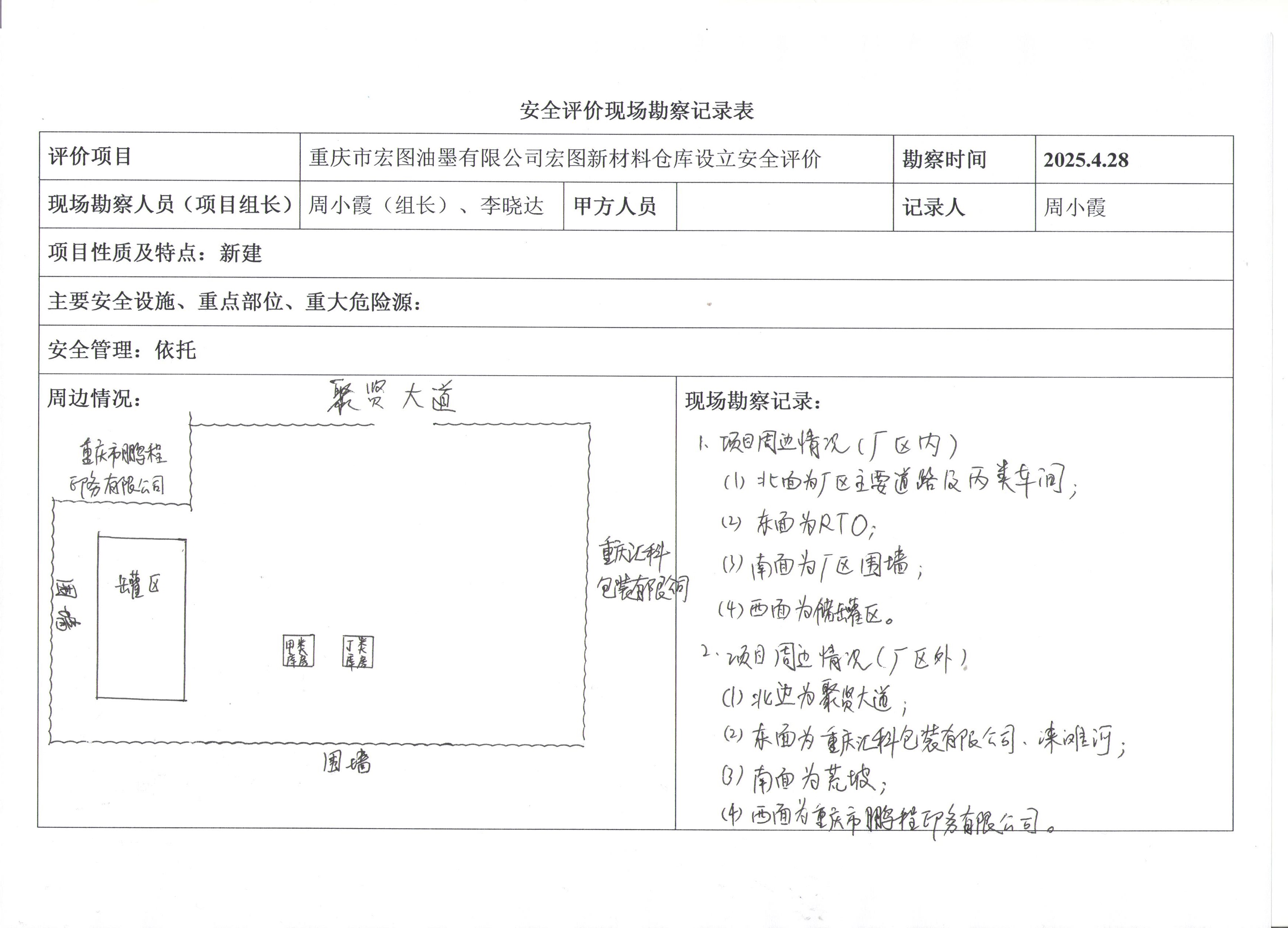 項目名稱 | 重慶市宏圖油墨有限公司宏圖新材料倉庫設(shè)立安全評價報告 | 合同編號 | DA(渝)-PJ-202500328 | |||||