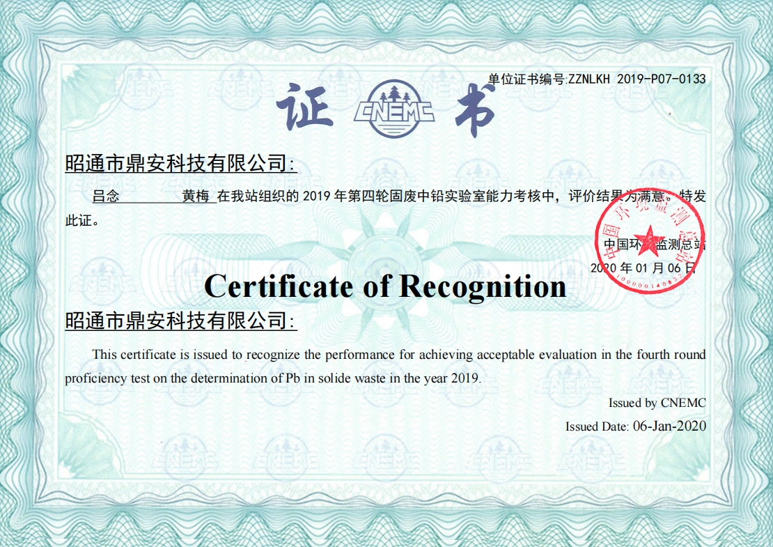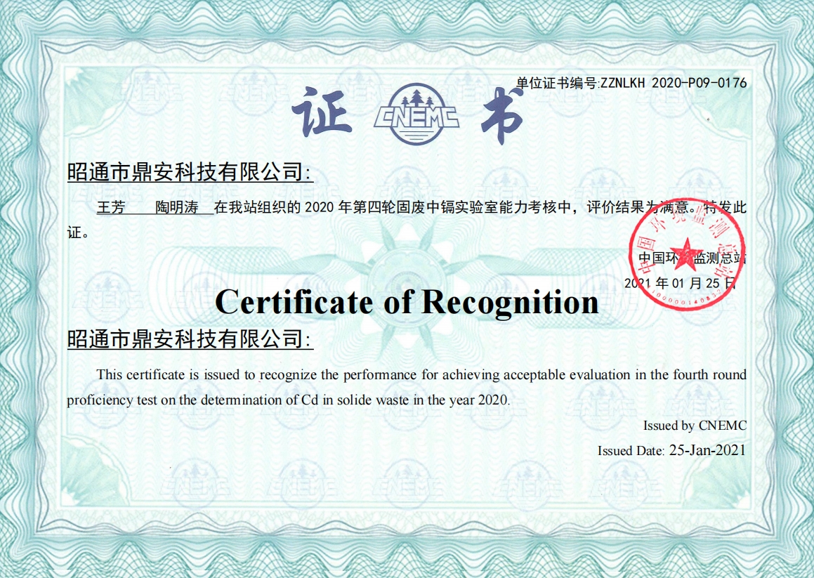 能力驗(yàn)證證書(shū)