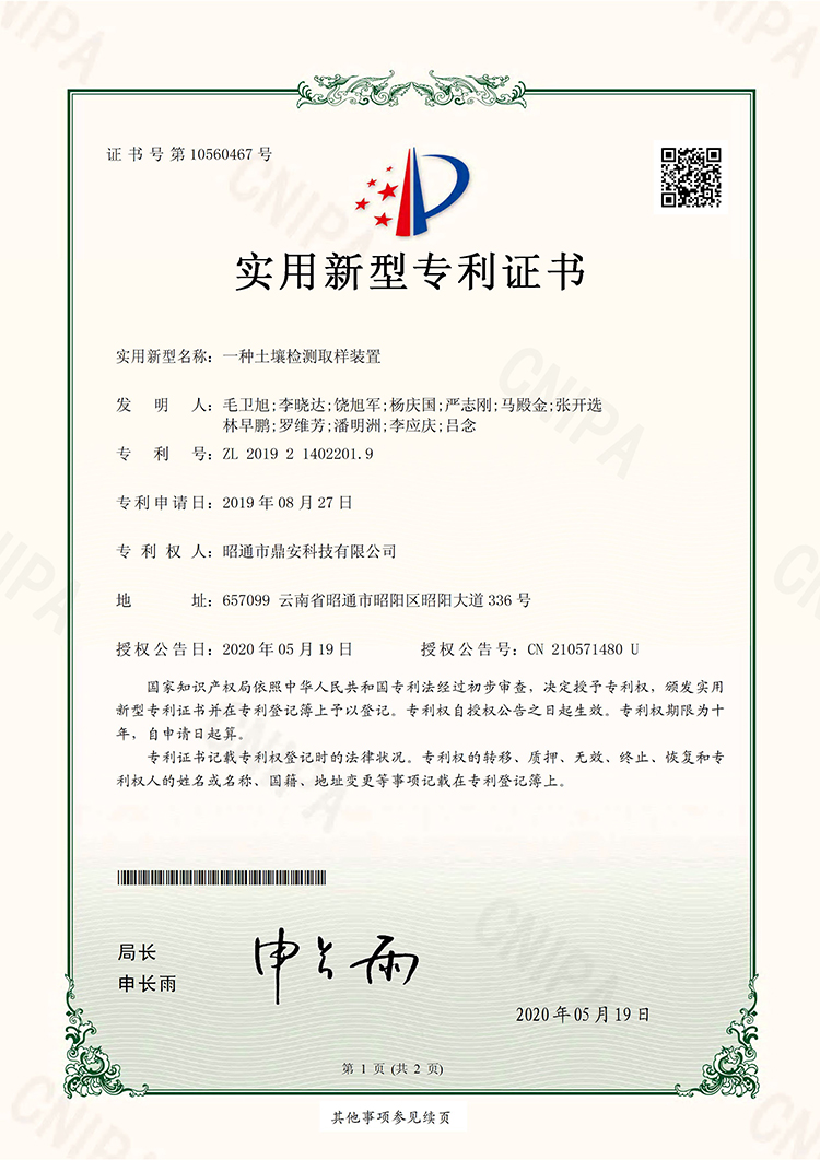 10560467一種土壤檢測(cè)取樣裝置20200519實(shí)用新型專利證書(shū)